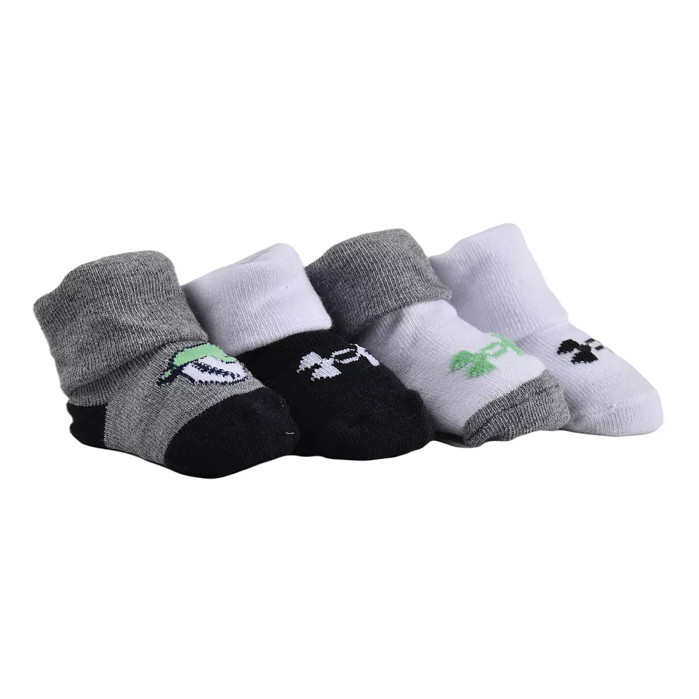 Keep your little future athlete’s feet nice and toasty in these baby boys’ four-pack of booties from Under Armour.