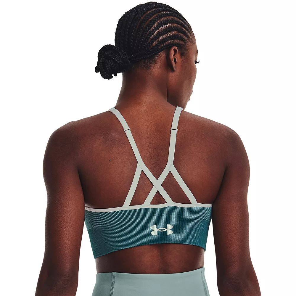 This Under Armour women’s sports bra delivers strategic support, tailored for low-impact activities like yoga, pilates & hiking. The UA Seamless design of this sports bra features a soft, breathable knit fabric for all-day comfort.