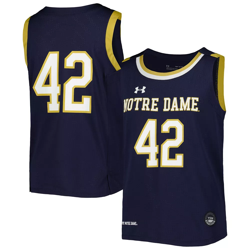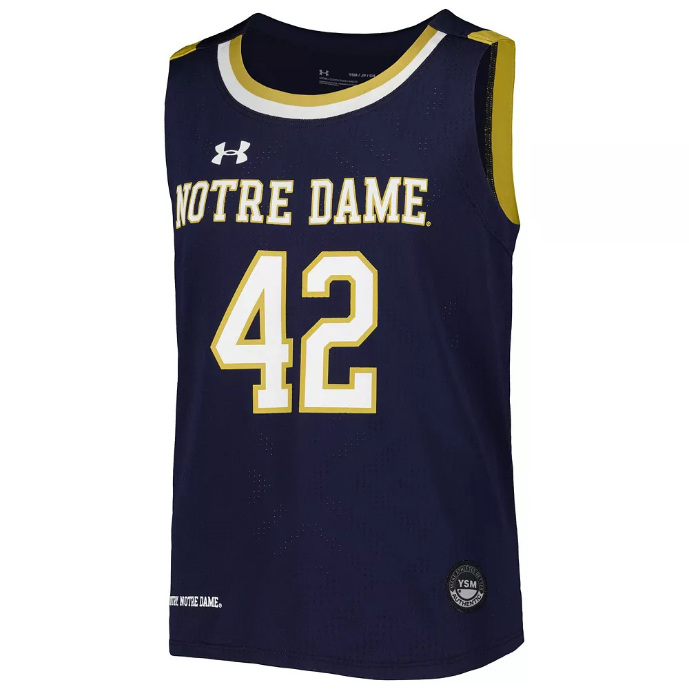 Get the perfect piece of gear to highlight your enthusiasm for the next Notre Dame Fighting Irish tip-off with this Under Armour replica basketball jersey. The classic construction and game-ready Notre Dame Fighting Irish graphics make this jersey a must-have addition to your collection. Rock this with your favorite team hat for a complete look any fan would be proud to show off.